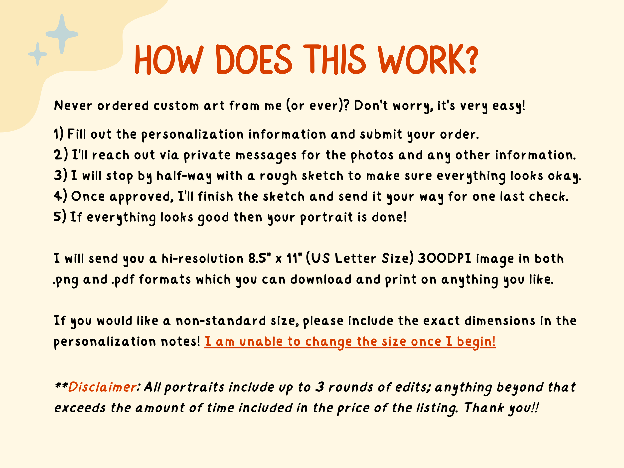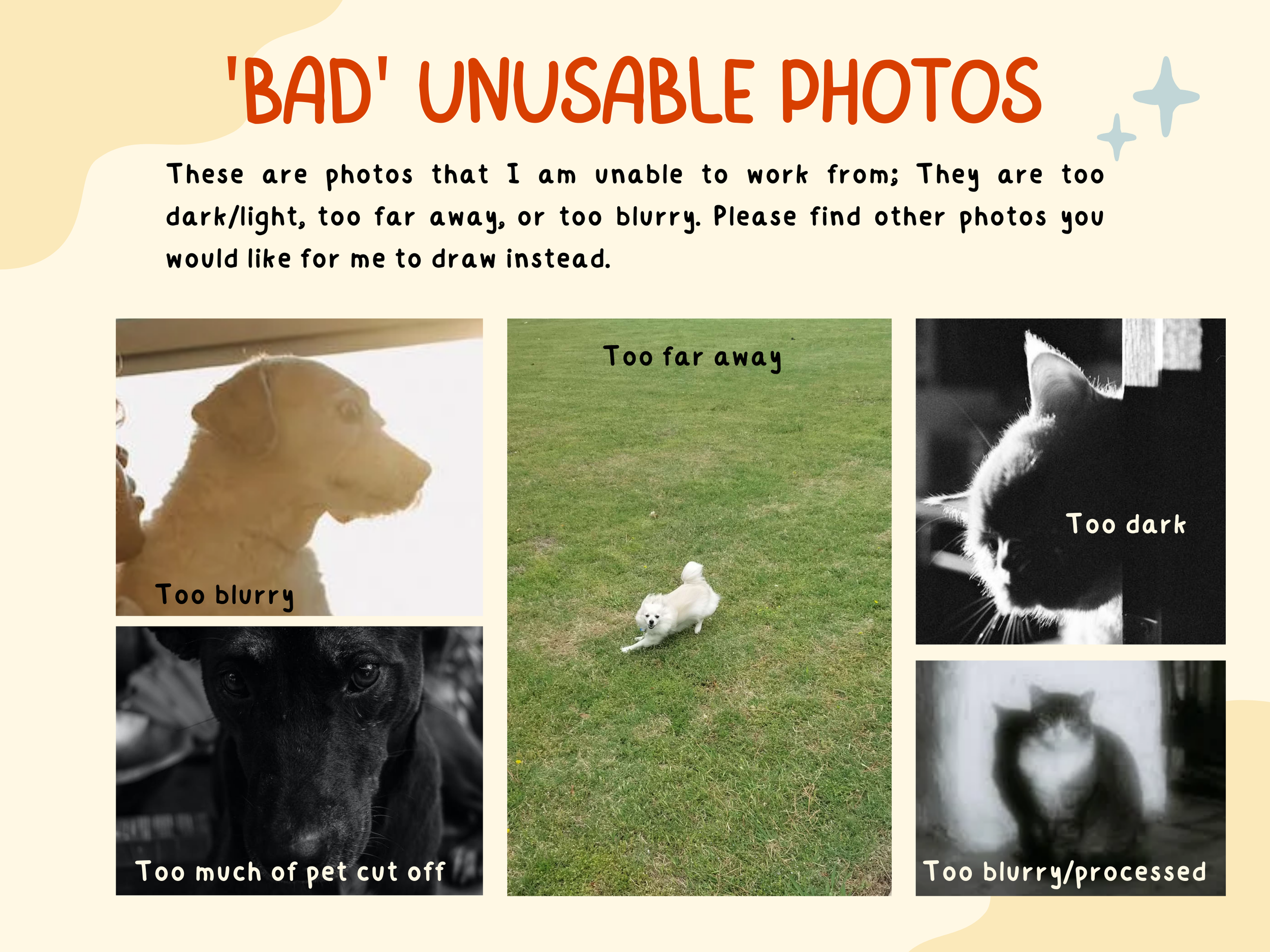 Because of this, most folks who commission pet portraits are typically none too versed in the process of custom artwork, both in the scope of the art itself, as well as the process from start to finish. I designed a straight forward guide for such clients, to better understand the commission process, and to minimize frustration.