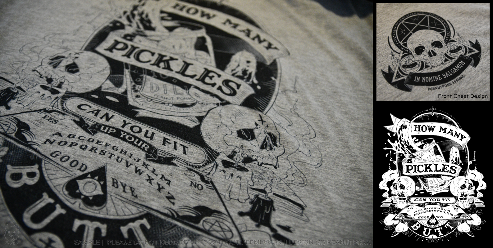 Colours, formatting, and print size were made for grey, black and red shirts, with subtle editing to each to make each design standout on each respective colour.